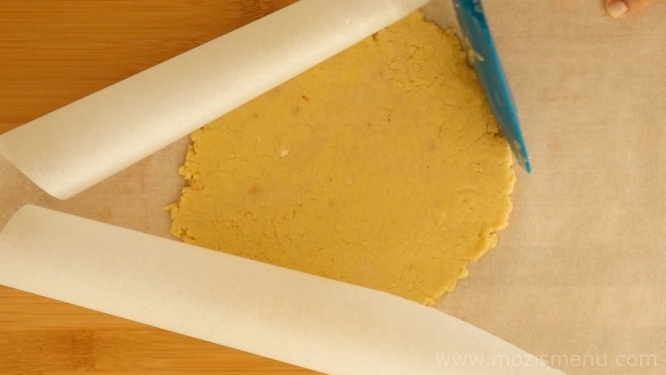 - Place a parchment paper (you can also use the same plate used to knead the dough to flatten, but using a parchment paper will make this step easier).